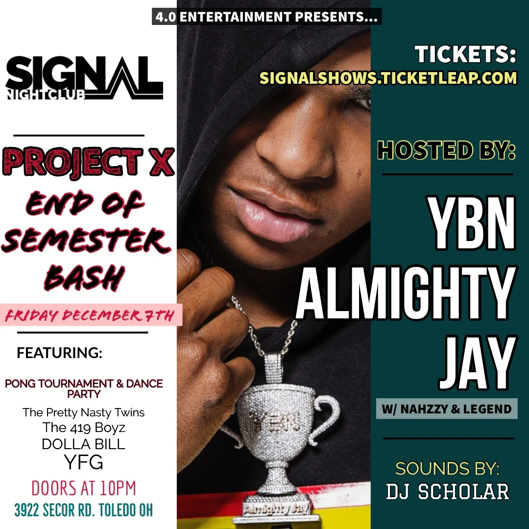 Dec 7 9:00 PM21:00 YBN Almighty Jay @ Signal Nightclub Toledo, Ohio Friday, December 7, 2018 9:00 PM 10:00 PM 21:00 22:00 Signal Nightclub (map) Google Calendar ICS Buy Tickets View Event →